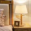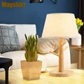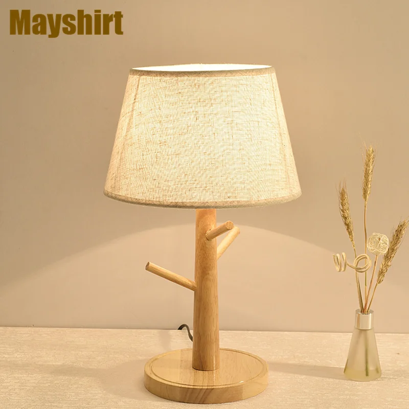 Slide Modern Wood Tree Fabric Table Lamps for Living Room Bar Kitchen Bedroom Bedside Desk Lamp Home Decor LED Standing Light Fixtures